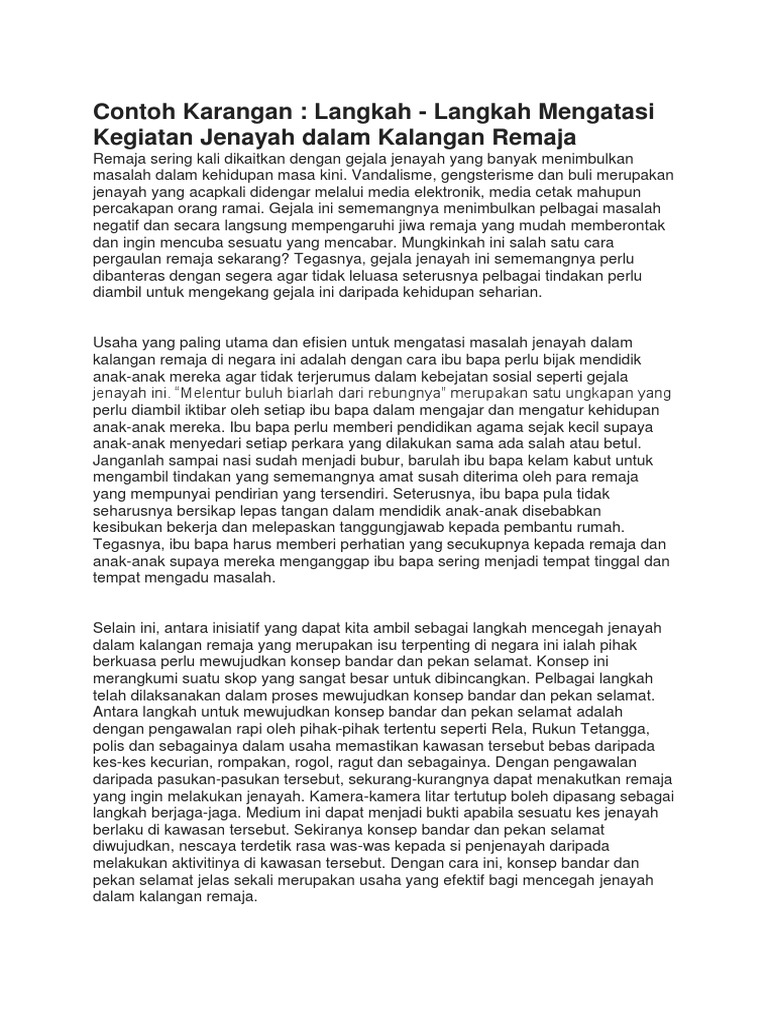 Karangan Punca Punca Gejala Sosial Dalam Kalangan Remaja Englshmina